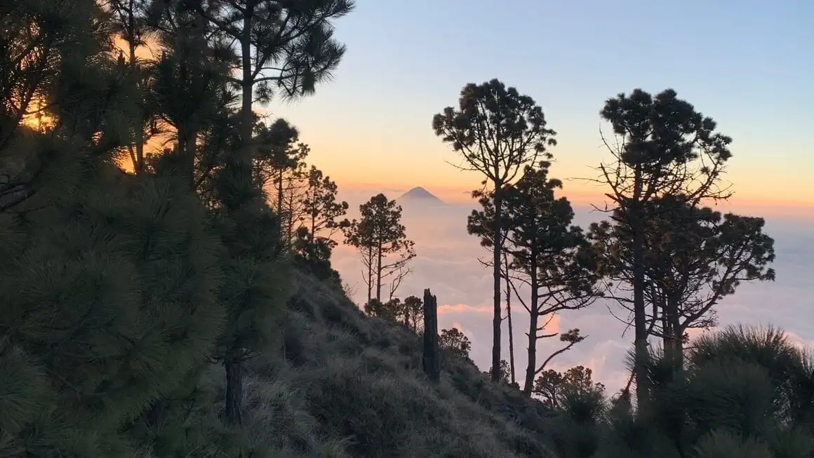எரிமலை அகாடெனாங்கோ உச்சியை அடைந்த பிறகு எரிமலை ஃபியூகோ மீது சூரிய உதயத்தைப் பார்ப்பது. எனக்கு பிடித்த அனுபவங்களில் ஒன்று!